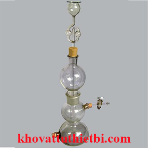 - Mở khoá đổ axit vào bằng phễu nhỏ sao cho vừa ngập các viên kẽm thì đóng khoá lại;