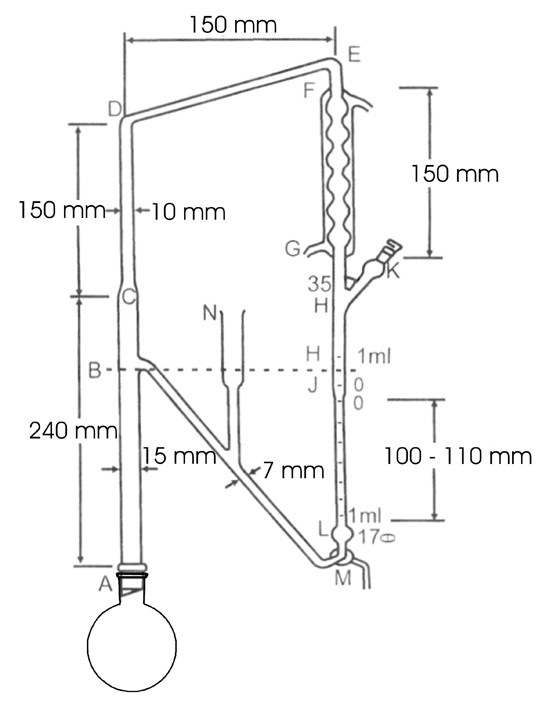 Có nhiều bộ dụng cụ khác nhau để định lượng tinh dầu, dưới đây là sơ đồ bộ dụng cụ định lượng tinh dầu theo dược điển Việt Nam V: