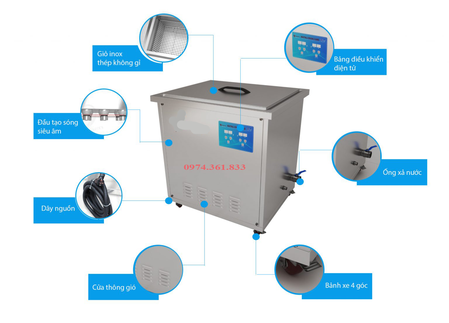 Bể rửa siêu âm công nghiệp VietSkymen VS-300ST sở hữu những ưu điểm nổi bật sau: