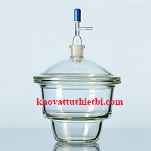 Bình hút ẩm có tay nắm, gờ mài bằng, có vòi, thủy tinh borosilicate 3.3