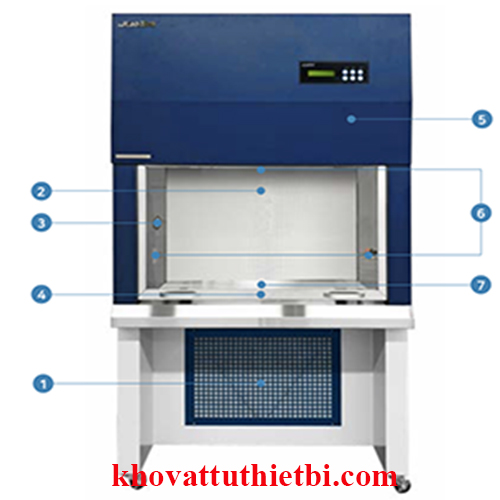 - Bộ lọc HEPA, cấp làm sạch Class 100, hiệu suất màng lọc 99.99% đối với các hạt có kích thước 0.3µm