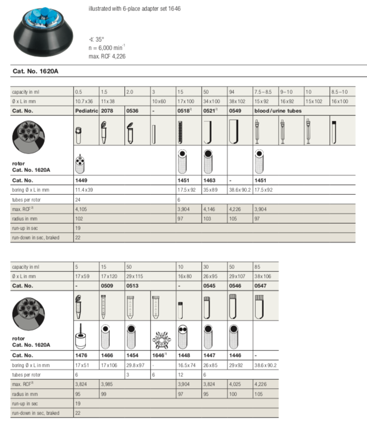 Với rotor góc 6 vị trí Quý khách hàng có thể lựa chọn rất hiều loại Adapter phù hợp với các loại ống ly tâm được sử dụng. Hettich đã mang lại một giải pháp toàn diện và hiệu quả khi khách hàng có thể dễ dàng thay thế adapter khi đổi loại ống ly tâm. Nhờ đó một máy ly tâm có thể được sử dụng với rất nhiều loại ống.