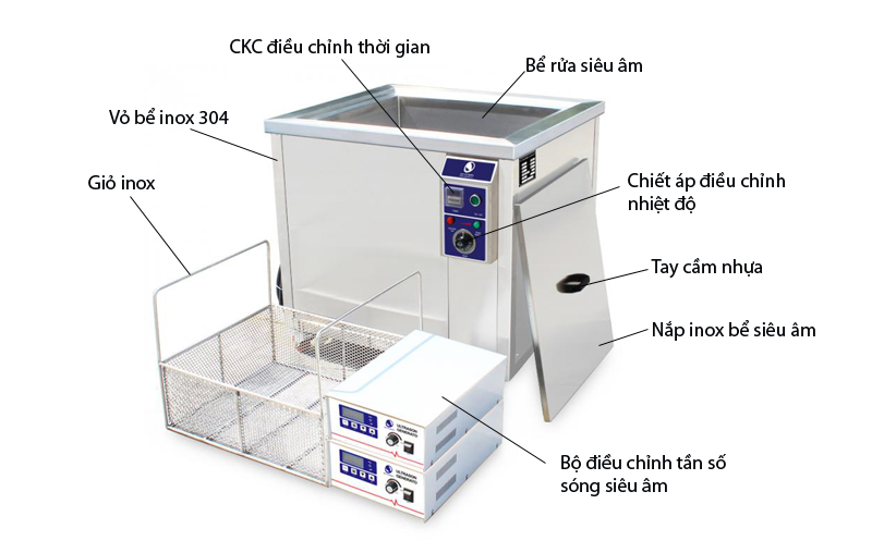 Về thiết kế, JP-720ST chỉ có kích thước to hơn so với Bể rửa siêu âm công nghiệp JP-360ST, bao gồm bảng điều khiển có CKC điều chỉnh thời gian (Giờ, Phút, giây) một chiết áp vặn điều khiển thời gian. Máy đi kèm 2 bộ tạo & điều chỉnh tần số sóng siêu âm rời, một giá rửa inox 304 chắc chắn.