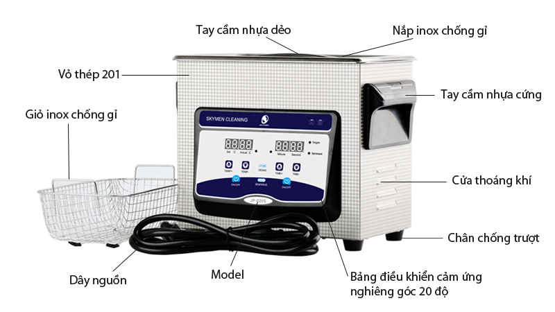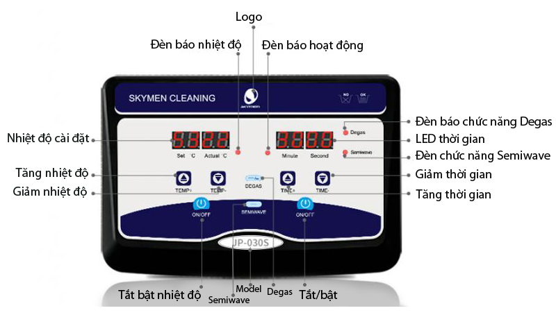 Bể rửa siêu âm JP-020S nằm trong tốp 8 sản phẩm thiết bị làm sạch bằng sóng siêu âm thương hiệu Skymen. Sản phẩm có chứng chỉ CE – tiêu chuẩn kỹ thuật EU & RoHS – Chỉ tiêu hạn chế các chất nguy hiểm & ISO9001. Bể rửa công nghệ siêu âm JP-020S sử dụng bảng điều khiển cảm ứng, góc nghiêng 20 độ, cung cấp đầy đủ tính năng 7 chức năng bao gồm Degas, chế độ Semiwave & rửa thông thường. Nhiệt độ dung dịch ho phép điều chỉnh từ 20 đến gần 80 độ C, tăng hiệu năng tuyệt trùng đối với dụng cụ y tế.