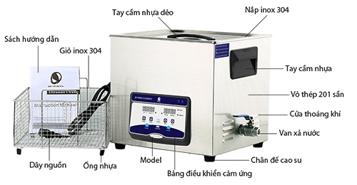 Bể rửa làm sạch bằng công nghệ sóng siêu âm JP-031S sử dụng bảng điều khiển thông minh, dung tích bể 6.5L, công suất 180W với 3 đầu tạo sóng. Bảng điều khiển cảm ứng đặt trên mặt phẳng nghiêng 20 độ, nhô ra phía ngoài giúp thao tác lựa chọn chế độ dễ dàng hơn. Máy tích hợp công nghệ gia nhiệt cho dung dịch từ 0 đến 80 độ, thời gián sục kéo dài tối đa 30 phút.