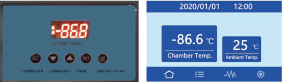 - Nhiệt độ bên trong có thể được điều chỉnh trong phạm vi -40 ℃ ~ -86 ℃, độ phân giải 0,1 ℃