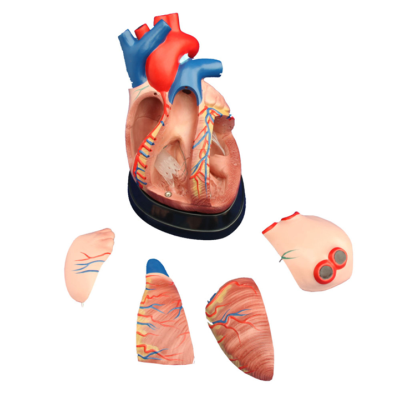 Mô hình này cho thấy các đặc điểm bên ngoài, cấu trúc bên trong của tim và mối liên hệ giữa các mạch máu lớn.