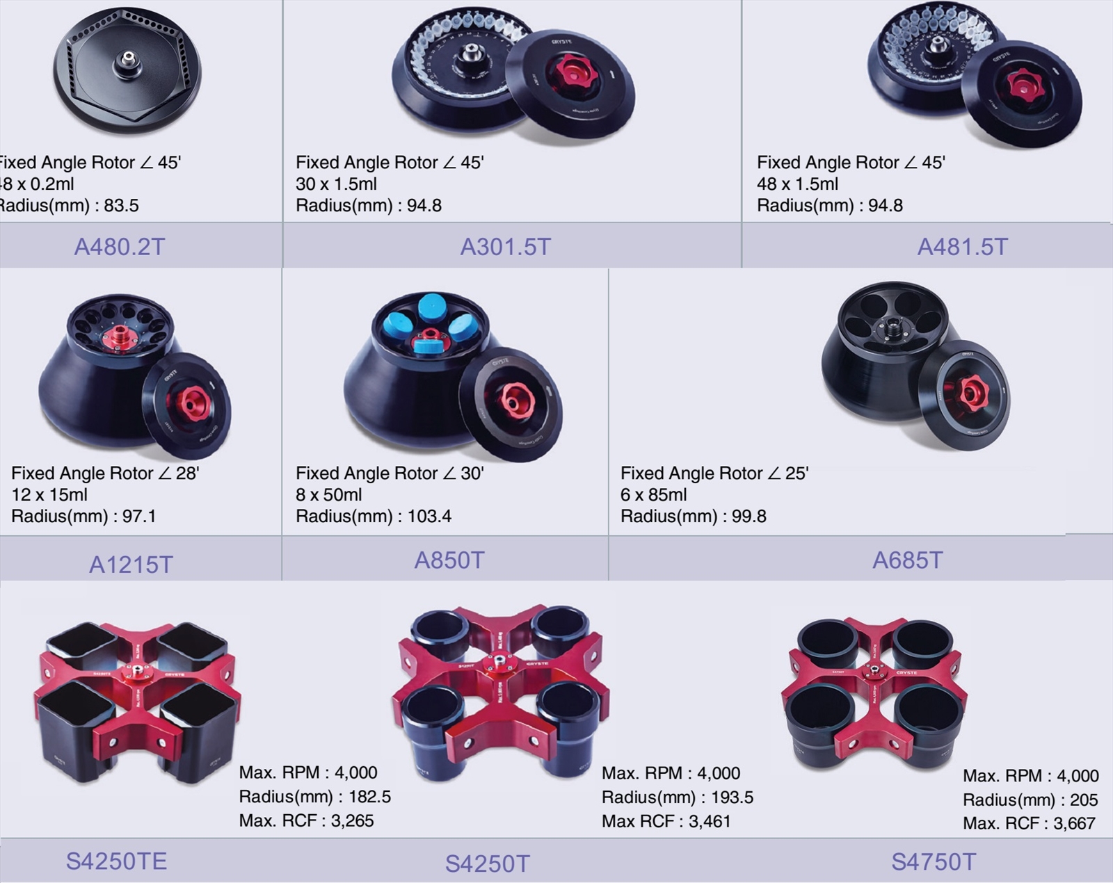 - Lực ly tâm tối đa: 15,262 RCF