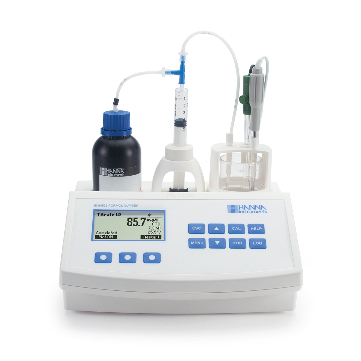 Cung cấp gồm: HI84532-02 (230V) được cung cấp gồm điện cực pH HI1131B, điện cực nhiệt độ HI7662-M, dung dịch châm điện cực HI7082, (30mL), dung dịch chuẩn HI84533-50 (230 mL), dung dịch hiệu chuẩn bơm HI84533-55 (120 mL), dung dịch formol base HI84533-61(230 mL), dung dịch điều chỉnh pH HI84533-62 (30 mL), dung dịch hydrogen peroxide HI84533-60 (30 mL), dung dịch làm sạch vết bẩn của rượu trên điện cực (2), cốc nhựa 100 mL (2), van bơm, xy lanh 5 mL, pipet nhựa 1 mL, hệ thống ống dẫn, cá từ, 12 VDC adapter và hướng dẫn sử dụng, giấy chứng nhận chất lượng